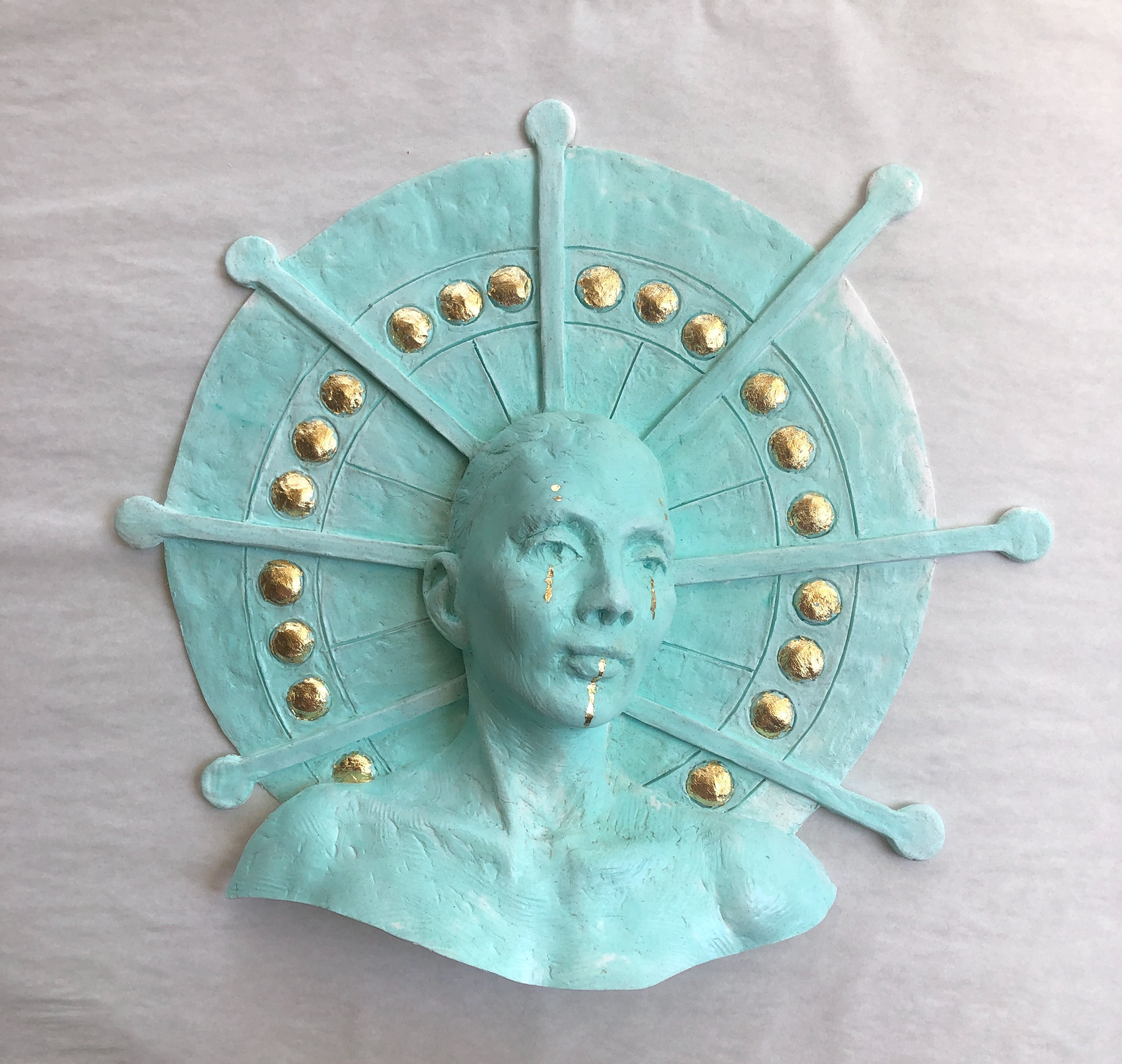 The Oracle portrait, resin fragment cast, silicone dye + gold leaf, FOR SALE